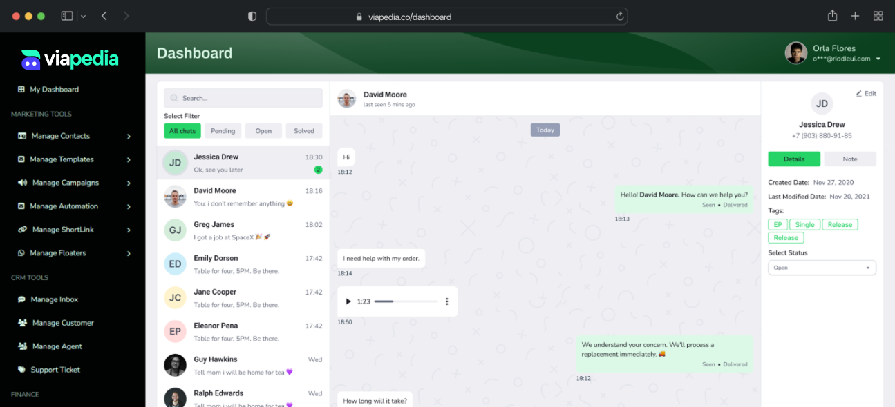 Viapedia is a complete cross-platform WhatsApp CRM and marketing tool that helps businesses manage conversations, automate customer engagement, and run marketing campaigns through WhatsApp.